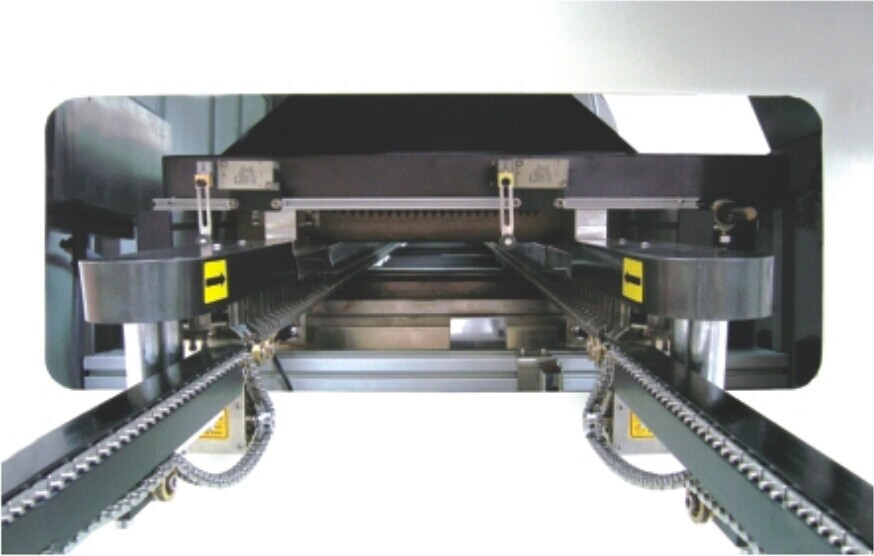 1、链条式入板装置,加强型钛爪链条,弹性高,不易变形,安全平稳传输系统,电子变频调速V=100~2000mm/min。