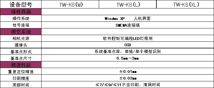 3、重复定位精度±0.01mm,印刷精度±0.02mm。