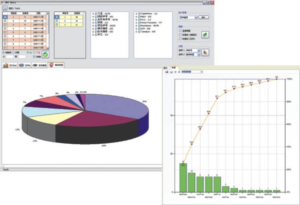 1、SPC系统提供丰富的统计信息,如:产量、直通率、误判元件统计、缺陷元件统计、检测时间、PCB条形码等。